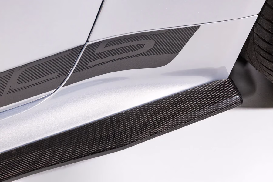 - Exposed Carbon Fibre Components: chin splitter, wake tower assemblies (front and rear), rocker splitters, and rear quarter splitters.