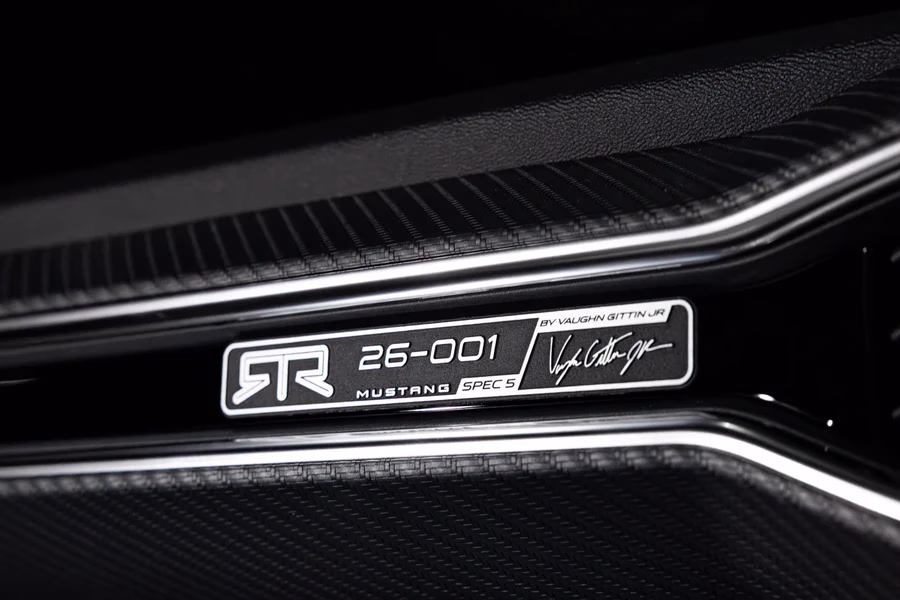 Under the hood is a supercharged 5.0L V8 paired with a 3.0L Stage 2 Whipple Supercharger System, which produces over 870 horsepower and 660 lb-ft of torque. An HD Race Intercooler keeps things cool under extreme conditions. At the same time, the RTR by BORLA Cat-Back Active Exhaust System — meticulously tuned to perfection by Vaughn Gittin Jr. — delivers a sound that hits just as hard as the power it unleashes. Spec 5 can be optioned with a 6-speed manual or a 10-speed automatic transmission. Either way, you’re in command of a machine that was built to thrill.